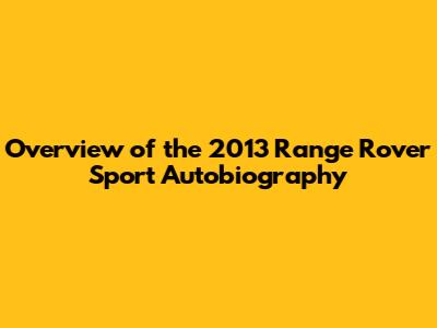 The 2013 Range Rover Sport Autobiography is a luxury SUV that offers a compelling blend of performance, style, and capability. While it has its potential issues, proper maintenance and care can help ensure a rewarding ownership experience. If you're in the market for a premium SUV, the 2013 Range Rover Sport Autobiography is worth considering.