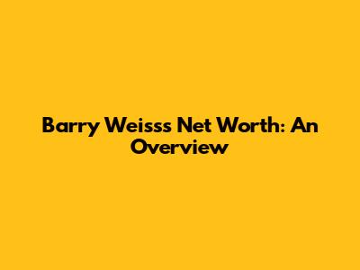 Barry Weiss's Net Worth: An Overview